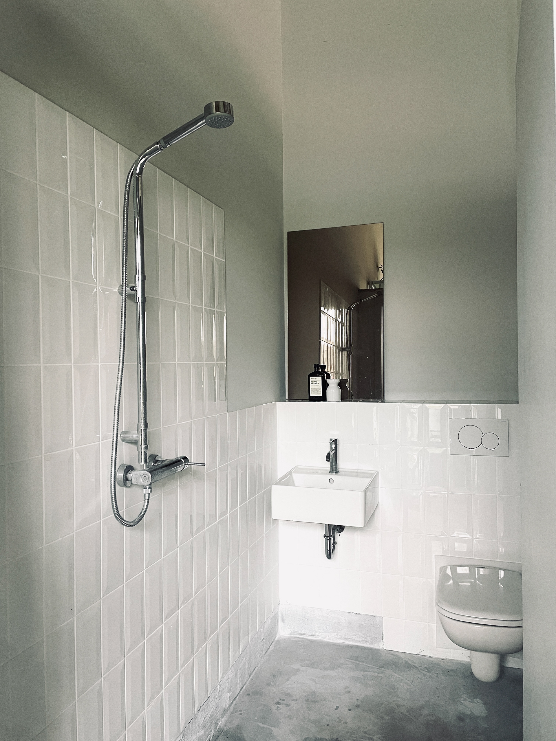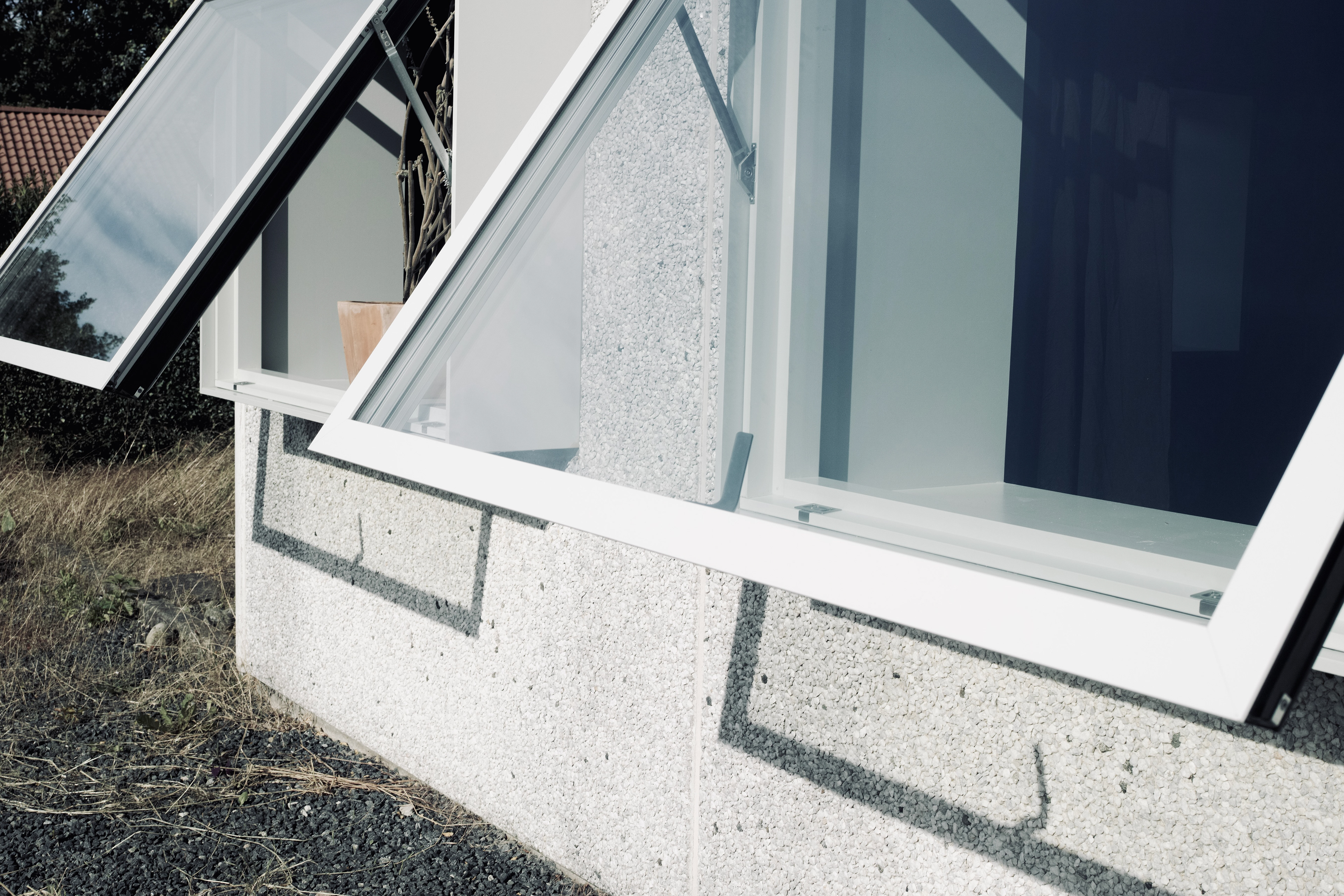 the building is built as massive construction in concrete, insulated. heated by sustainably produced district heating